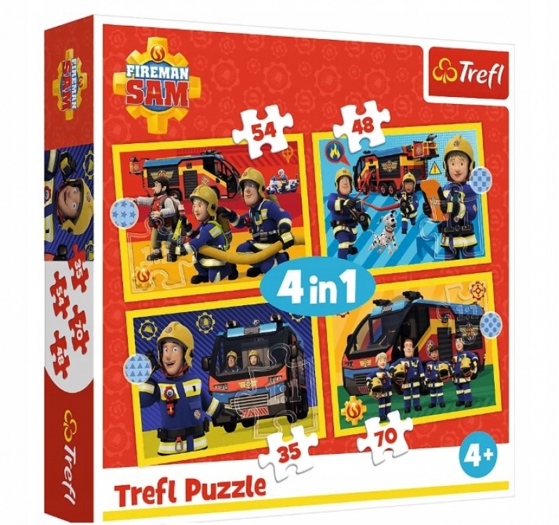 Strażak na sygnale to 4 niezależne układanki dla dzieci, zaprojektowane z myślą o małych fanach przygód bohaterów bajki Strażak Sam.