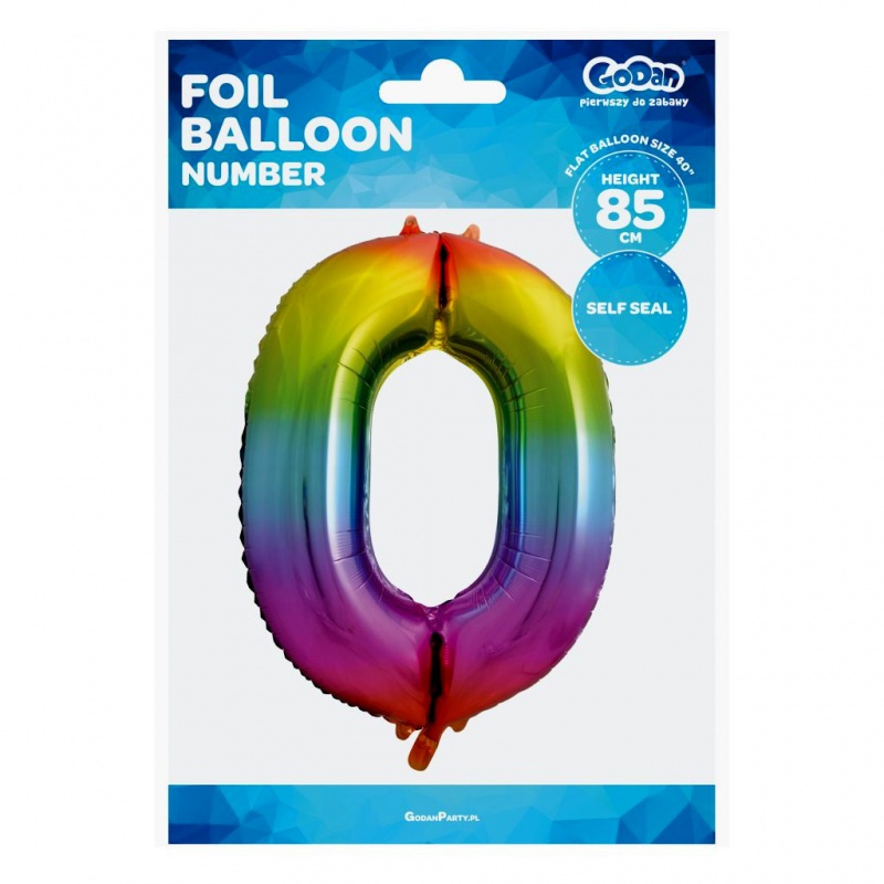 • Balon foliowy Cyfra 0, tęczowa, 85 cm