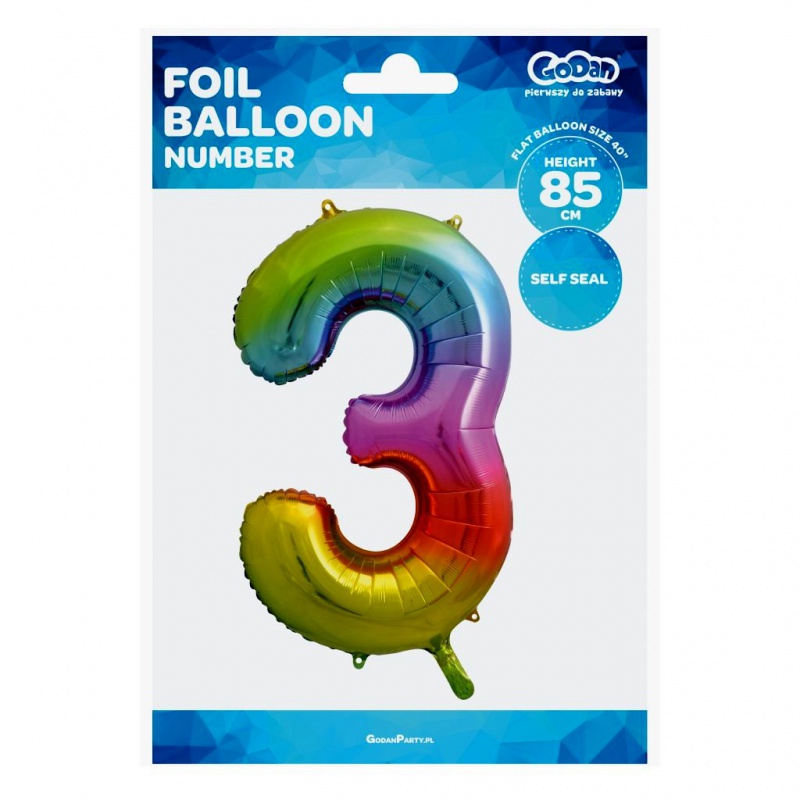 • Balon foliowy Cyfra 3, tęczowa, 85 cm