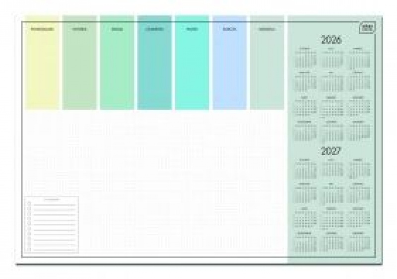 Biuwar 59x40cm 30kart.Colour 2026/2027 Cechy produktu: 30 kartek na każdej stronie: planer tygodniowy oraz 2 skrócone kalendarze na...