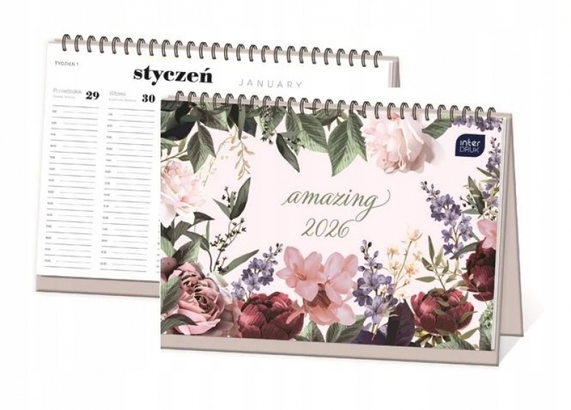 KALENDARZ biurkowy POZIOMY TYGODNIOWY KWIATY 2026 Interdruk (82627)