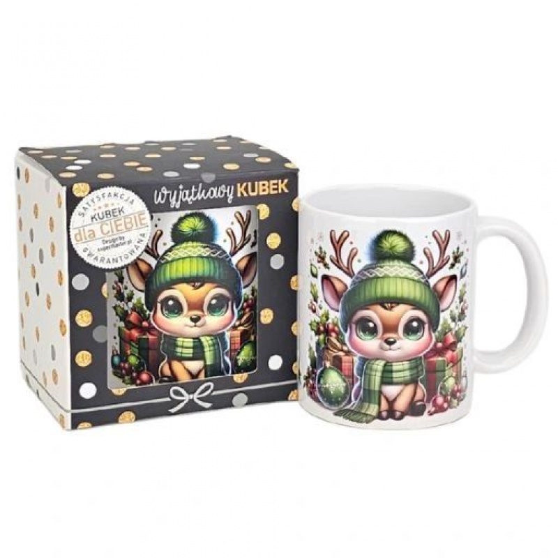 KUBEK OKOLICZNOŚCIOWY RENIFER RUDI BN-9, Boże Narodzenie, Art. świąteczne i okolicznościowe