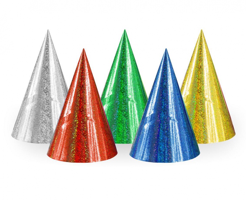 • PAPIEROWE CZAPECZKI URODZINOWE, BŁYSZCZĄCE, WIELOKOLOROWE