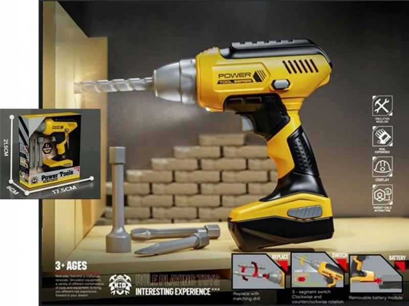 Bardzo realistyczna wktętarka to doskonała, zabawka dla małego majsterkowicza. Wkrętarka działa jak prawdziwa, wystarczy nacisnąć przycisk, aby wiertło zaczęło się obracać.