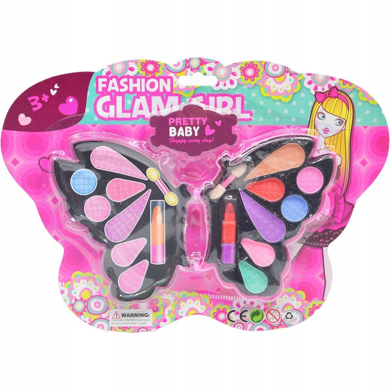 W środku opakowania w kształcie motyla znajdują się kolorowe cienie do powiek oraz szminki.