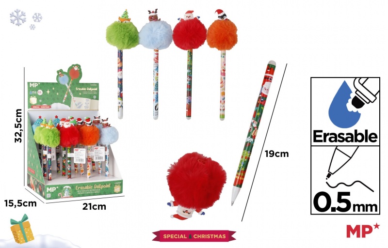 DŁUGOPIS ŚCIERALNY ŚWIĄTECZNY Z POMPONEM
