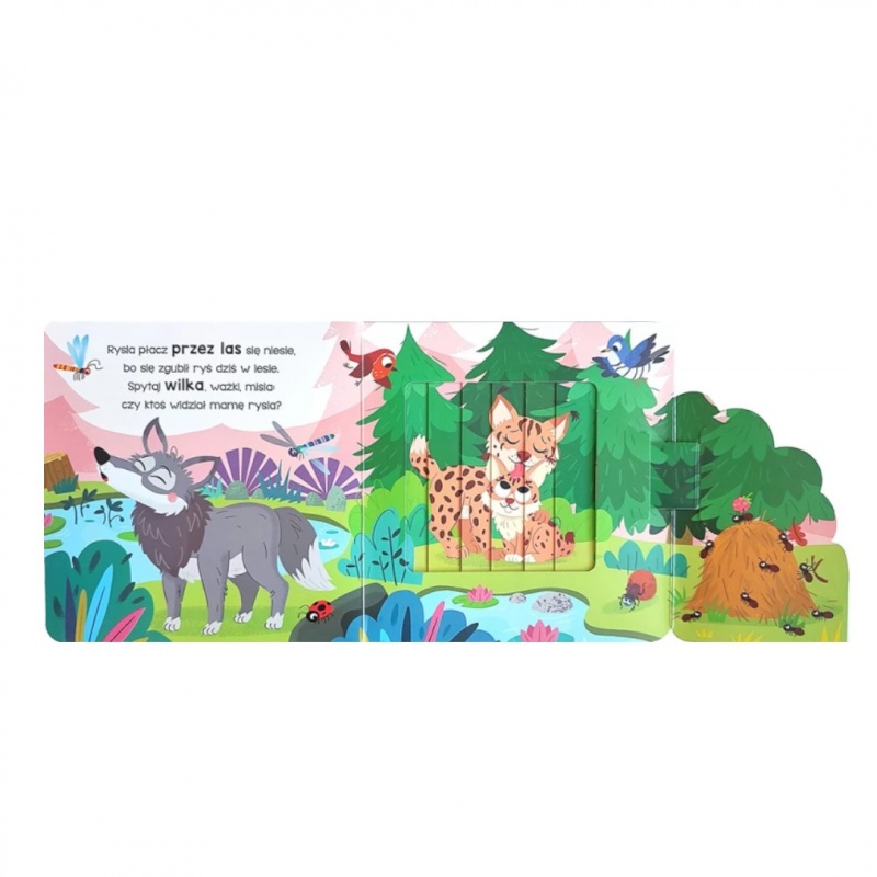 Uwaga! Magia! Wystarczy otworzyć okładkę lub pociągnąć za zakładkę, a jeden obrazek zmienia się w inny. Dzieci będą zachwycone tą książeczką, w której za pomocą prostego mechanizmu można ożywić zwierzątka w lesie.
