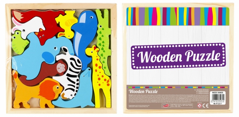 UKŁADANKA DREW ZWIERZ DZIKIE 12EL 2615, Drewniane, Zabawki