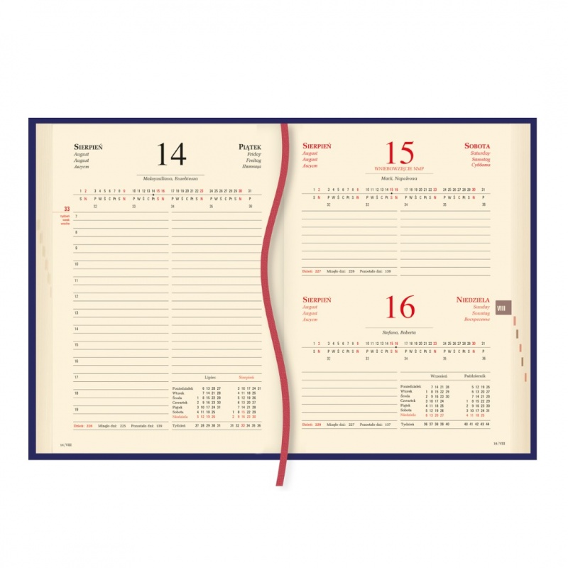 układ kalendarium: 1 dzień - 1 strona