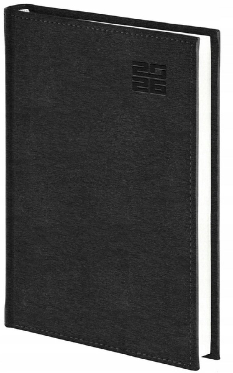 KALENDARZ ALUMINIUM STAND.B5 DZIENNY CZARNY 2026 Kalendarz drukowany na białym papierze; bloki terminarza szyte nićmi; kapitałka i tasiemka...