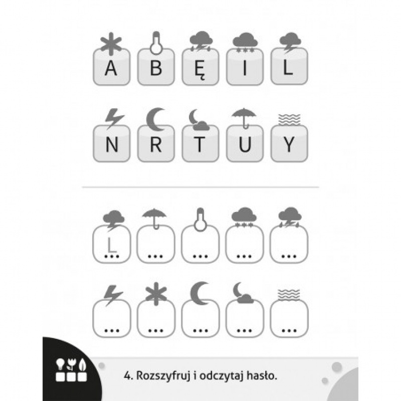 Format: 11,5 x 14,5 cm; ilustracje czarno-białe, tekturowa podkładka, dołączony ołówek.