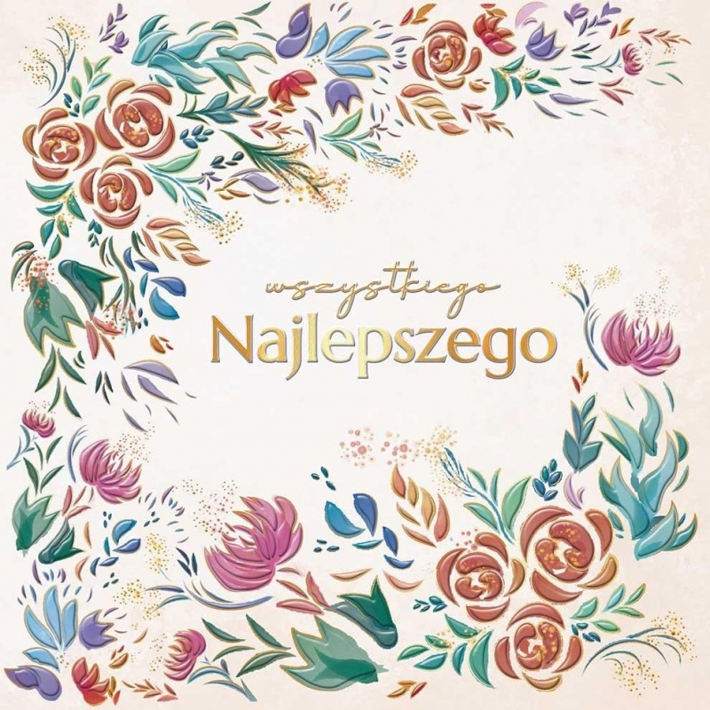 KARNET KW RETRO KWIATY Karnet kwadratowy 15 x 15 cm. Złocony i tłoczony, teksy życzeń w środku. Wydrukowany na wysokiej jakości papierze. W...