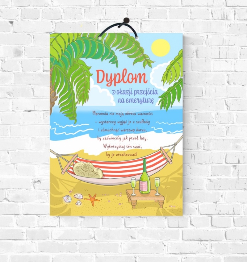 DYPLOM Emerytura Dyplom okolicznościowy wykonany z grubego kartonu, pokryty folią matową Soft Touch. Na odwrocie znajduje się miejsce na...
