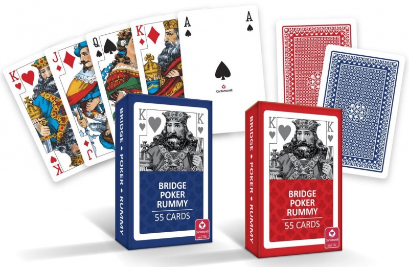 Tradycyjna talia kart do pokera dostępna jest w dwóch kolorach czerwonym i niebieskim (55 kart do gry).