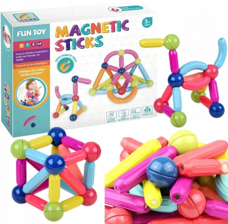 36 kolorowych elementów magnetycznych. Zestaw do samodzielnej konstrukcji. Nie posiada ostrych krawędzi. Wymiary opakowania: 24 x 18,5 x 6 cm Zawiera małe elementy