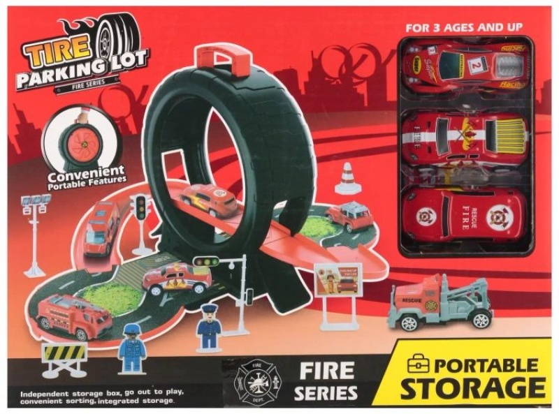 Rozwija kreatywność dziecka, parking łatwy w montażu, posiada ruchome elementy. Aby utrzymać bezpieczeństwo w mieście Straż Pożarna musi posiadać dużą flotę samochodową.