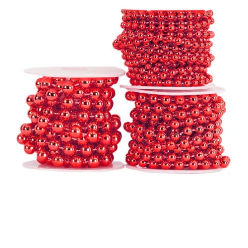 Perły metal na sznurku, śr. 6mm/3mb, czerwone, Koraliki, Art. kreatywne