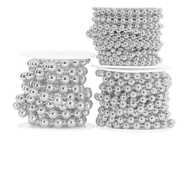 Perły metal na sznurku, śr. 6mm/3mb, srebrne, Koraliki, Art. kreatywne
