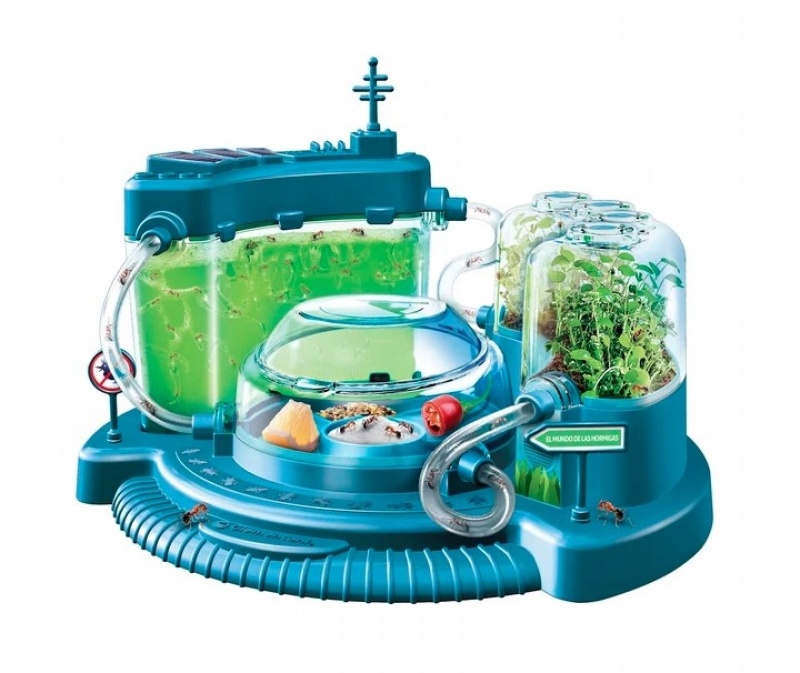 Modułowy zestaw do odtwarzania środowiska życia mrówek i obserwacji ich zachowania.