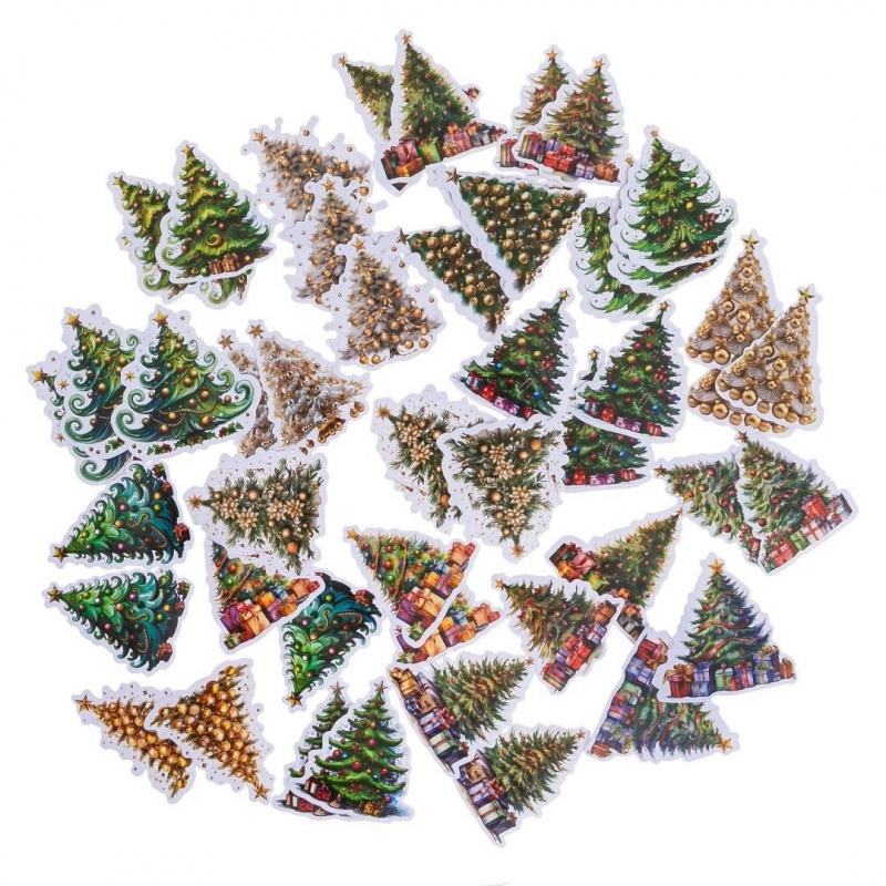 NAKLEJKI WINYLOWE ŚWIĄT.4-6cm.46szt.CHRISTM.TREES, Naklejki, Art. kreatywne