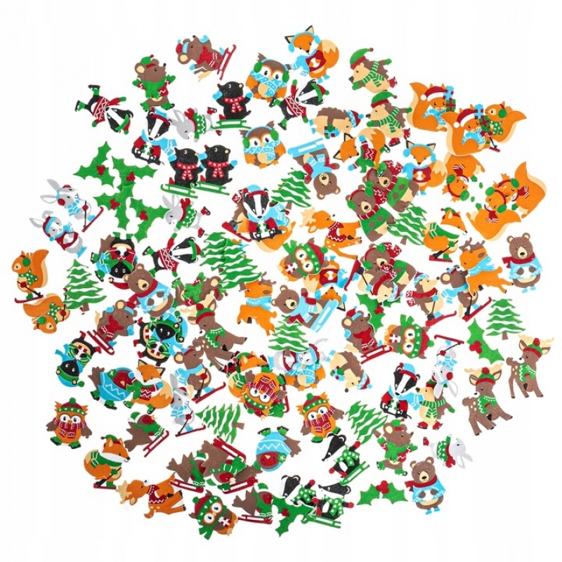 NAKLEJKI Z PIANKI ZIMOWE ZWIERZĄTKA 120szt., Naklejki, Art. kreatywne