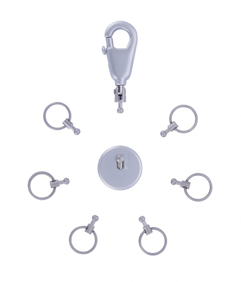 • wyposażony w 6 wymiennych kółek oraz solidny karabińczyk, zapewnia szybki dostęp do każdego klucza i ich łatwe rozdzielanie