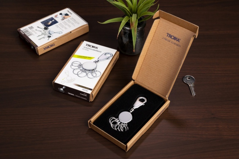 Brelok TROIKA Patent, z karabińczykiem, na 6 kluczy, srebrny mat, Ekskluzywne, Gadżety