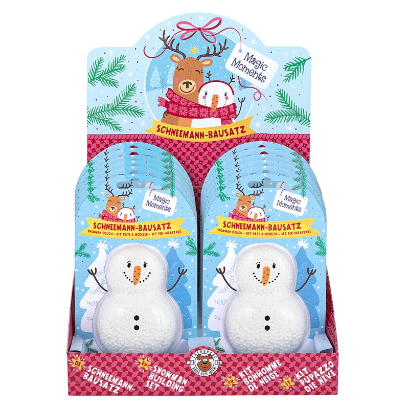 • zestaw składa się z 7 elementów, w tym plasteliny w kształcie kulek, marchewkowego nosa, cylindra, ruchomych oczu i guzików, zapewniając kreatywną zabawę i świetny pomysł na zimowy prezent lub dekorację