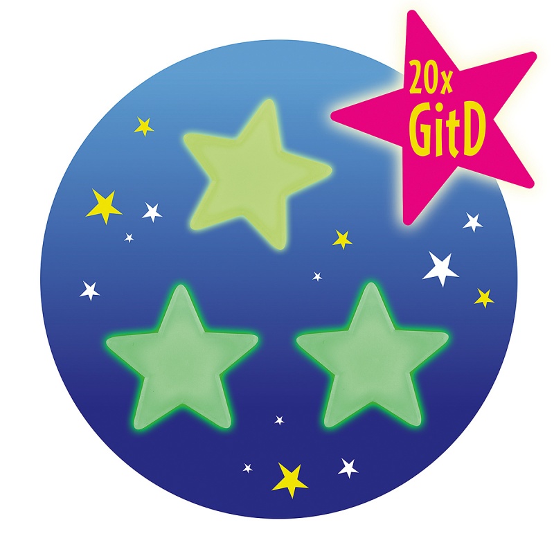 • magiczny zestaw przyklejanych, świecących w ciemności gwiazdek, które wnoszą odrobinę magii do dziecięcego pokoju