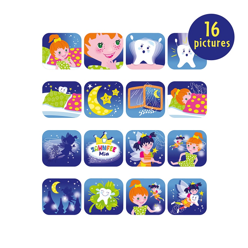 magiczny projektor, który przenosi bajkową opowieść o zębowej wróżce prosto na ścianę pokoju 16 czarujących obrazków i towarzysząca im historia tworzą...