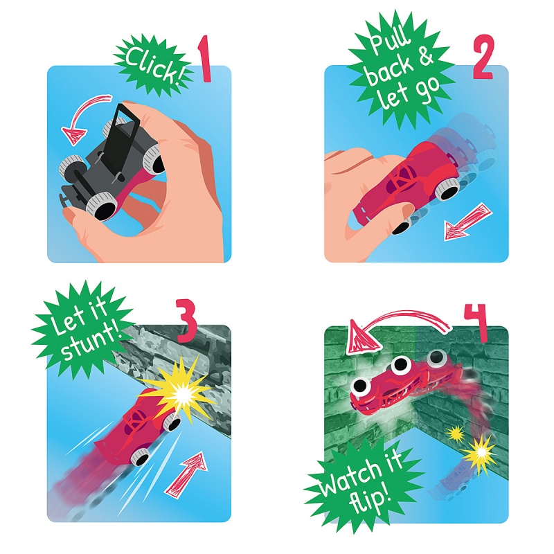 • posiada funkcję pull-back – wystarczy pociągnąć do tyłu, by rozpocząć ekscytujący wyścig, lub obrócić klapkę i zobaczyć imponujący obrót w powietrzu
