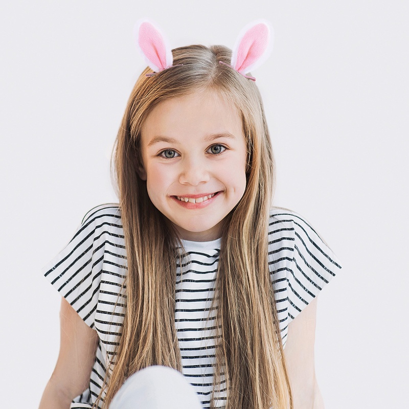 • metalowy klips pokryty tkaniną pewnie trzyma włosy, a miękkie, puszyste uszy przyciągają wzrok podczas Wielkanocy, karnawału i imprez tematycznych