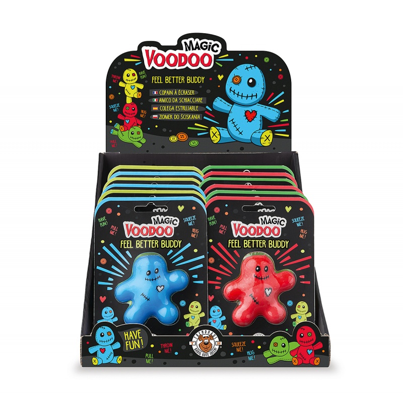 • ściśnij mnie! przytul mnie! pociągnij mnie! ten dwustronny Voodoo Buddy z dwiema różnymi minami (wesołą i smutną) to idealny sposób na rozładowanie stresu, rozciąganie i zabawę