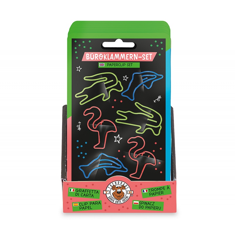 • zwierzęcy pomocnicy na biurko! sześć neonowych spinaczy do papieru w trzech ciekawych kształtach bezpiecznie trzyma dokumenty i dodaje biurku oryginalnego charakteru