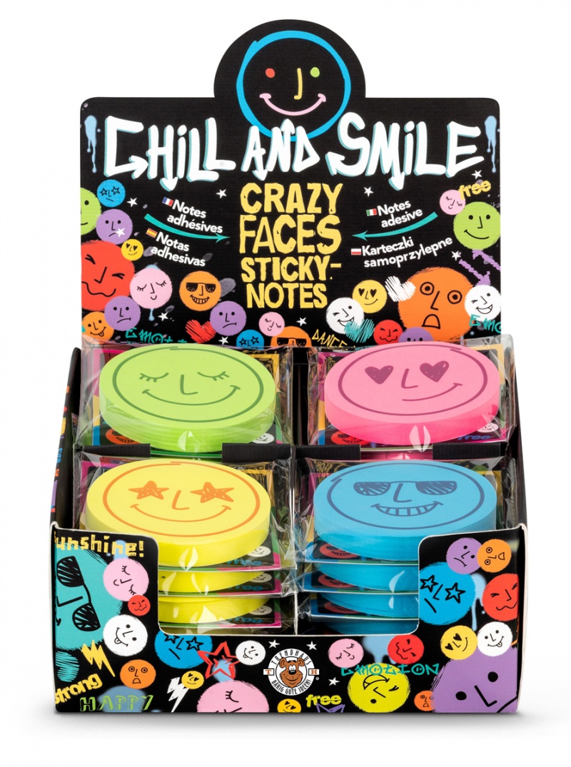 bądź pozytywnie nastawiony – te neonowe karteczki z wesołymi buźkami są praktyczne i poprawiają humor idealne do krótkich notatek, wiadomości, życzeń...