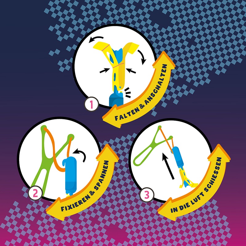 • zaciśnij, wystrzel i obserwuj lot! świecąca podniebna lotka wzbija się pionowo w górę i efektownie opada na ziemię – szczególnie widowiskowo wygląda w ciemności