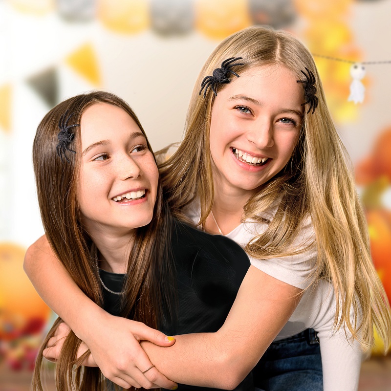 • błyszczące spinki do włosów z dużym pająkiem jako efektowny dodatek w klimacie grozy