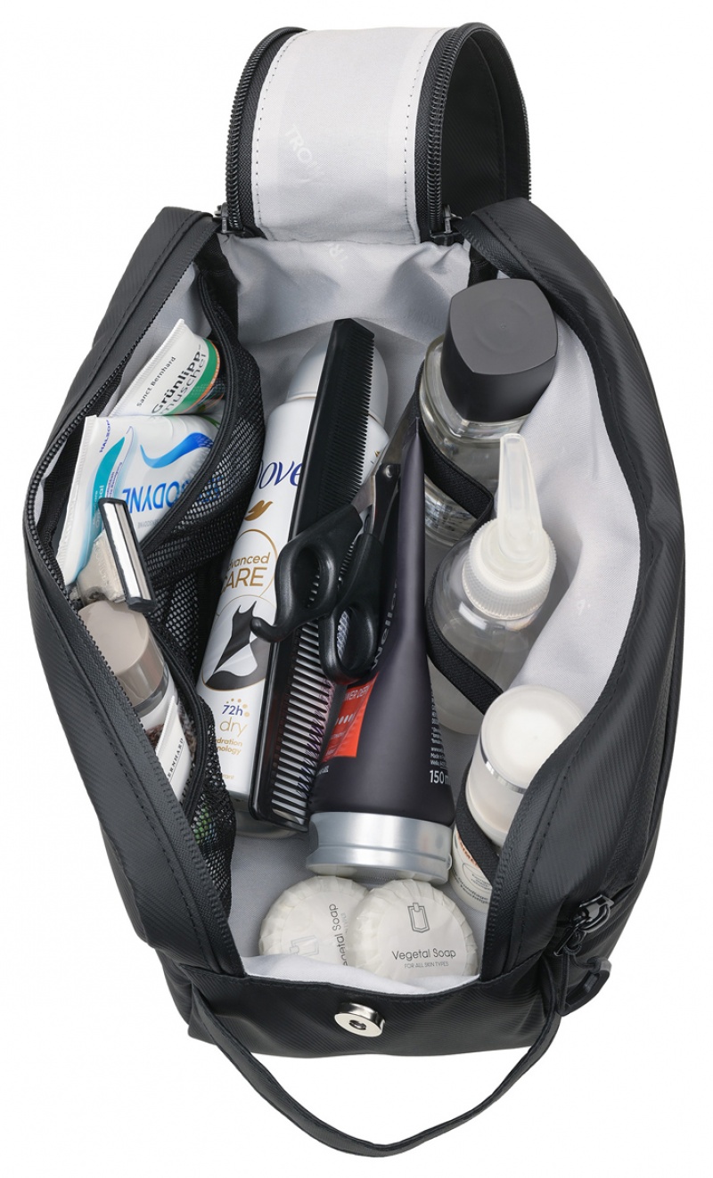 • nowa odsłona kosmetyczki: TROIKA Black Washbag 2 z łatwością pomieści wszystkie niezbędne kosmetyki szczotki do włosów, maszynki, makijaż, szampon, produkty do higieny jamy ustnej, kremy z filtrem i wiele więcej — nikt nie chce rezygnować z codziennych wygód w podróży