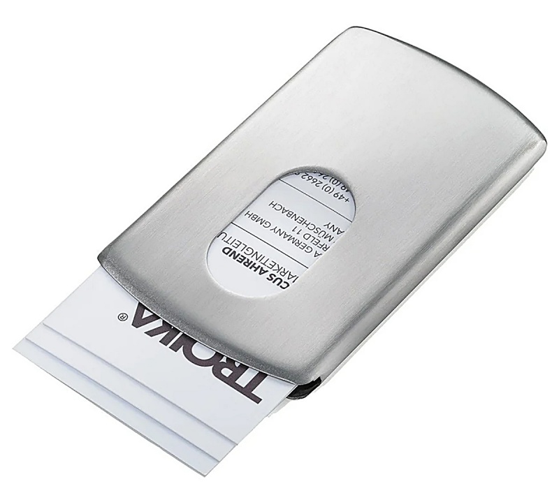 Etui na wizytówki TROIKA Slide, stalowe, Ekskluzywne, Gadżety