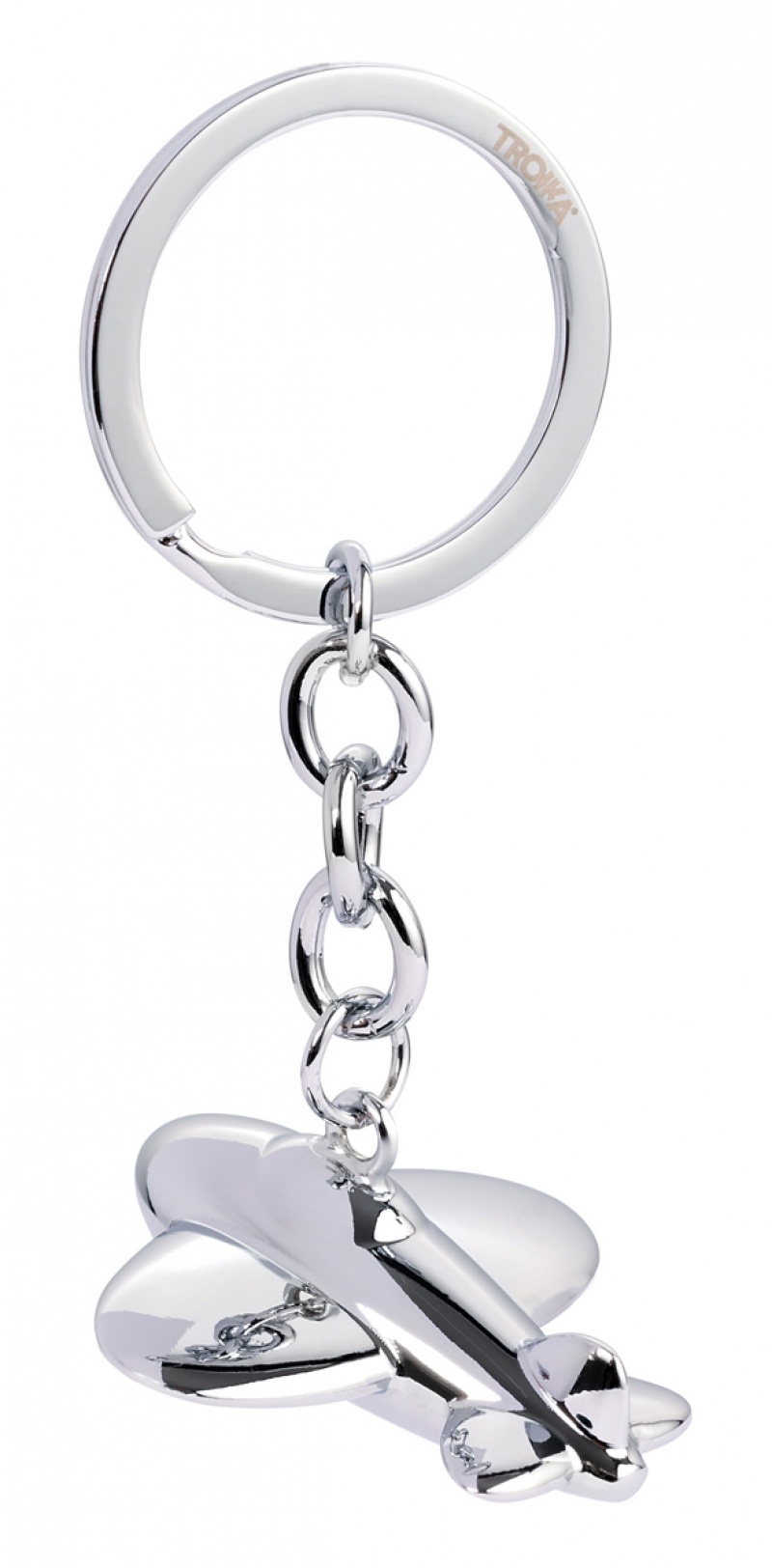 pokaż swoją miłość do latania z brelokiem Troika Jetsetter chromowana, metalowa zawieszka w kształcie samolotu jest przymocowana do dużego, solidnego...