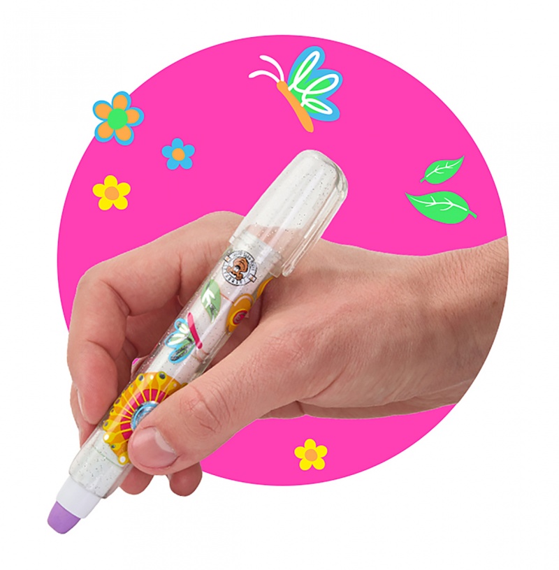 stylowy „ołówek” z wysuwanymi i wymiennymi gumkami obudowa z efektem srebrnego brokatowego konfetti oraz kolorowym motywem Happy Flower zawiera 5...