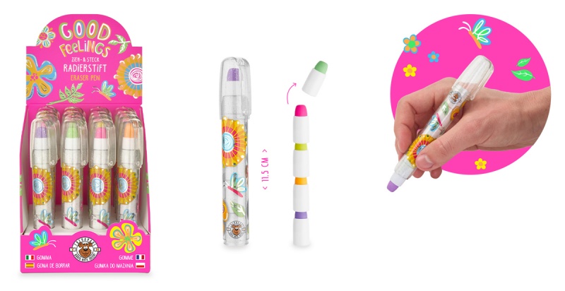• stylowy „ołówek” z wysuwanymi i wymiennymi gumkami