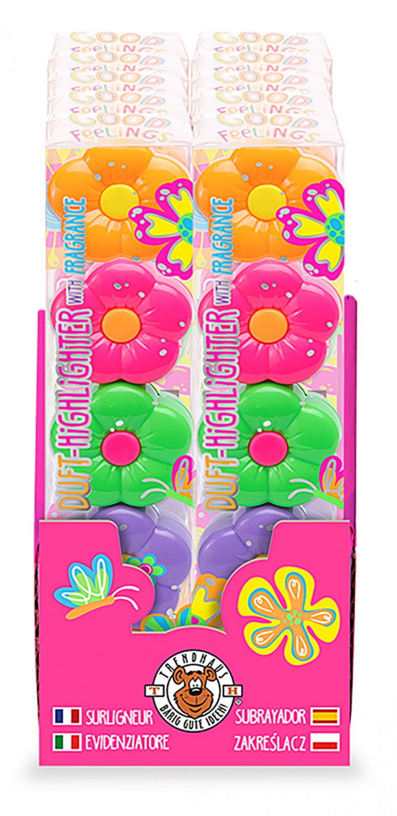 Zapachowe zakreślacze przekładane TRENDHAUS GF-6, 4 szt., mix kolorów, Szkolne, Gadżety