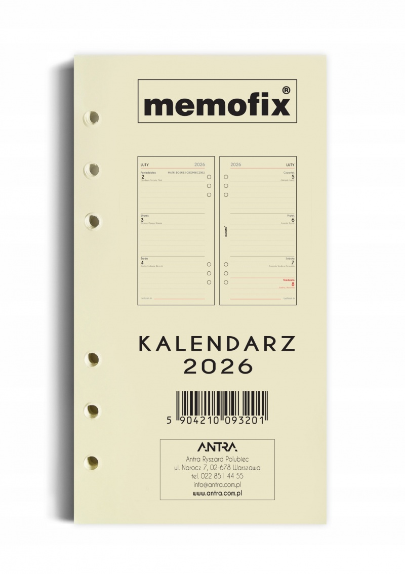 WKŁAD KALENDARZ 2026 MEMOFIX B6 TYDZIEŃ DO WGLĄDU