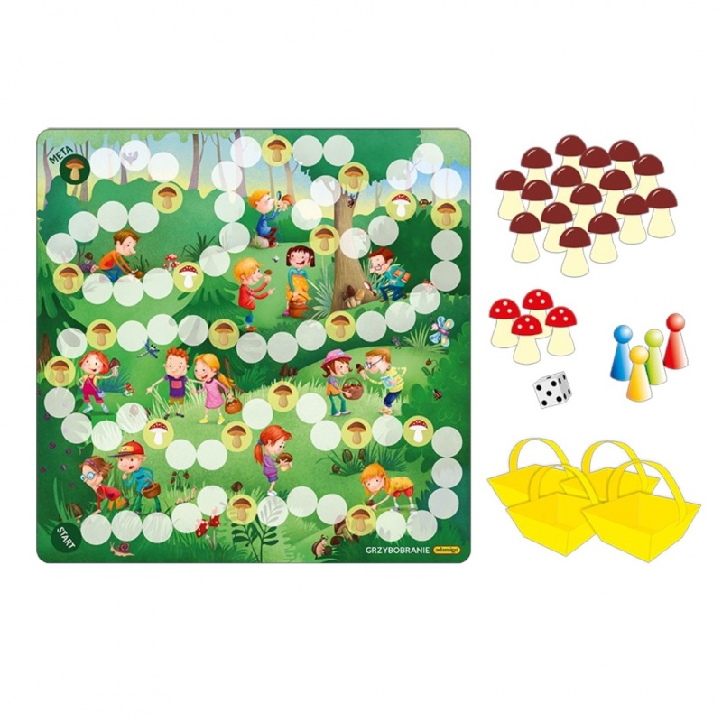 GRZYBOBRANIE GRA PLANSZOWA Jeśli Twoje dziecko lubi rywalizację w grupie, to gra planszowa "Grzybobranie" będzie dla niego wymarzoną zabawą. Gra...