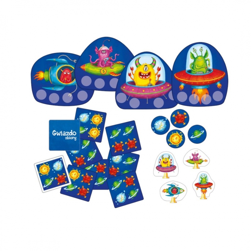 Jesteś w odległej galaktyce, gdzie wcielasz się w kosmitę, który chce zdobyć nowe terytoria. Latając swym statkiem kosmicznym, starasz się podbić jak największą konstelację. Gwiazdozbiory to gra, która uczy tworzenia zbiorów, ćwiczy pamięć i koncentrację, rozwija logiczne myślenie.