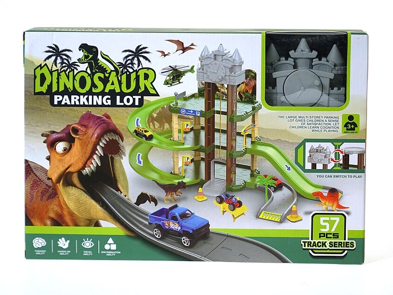 parking wielopoziomowy z dinozaurami, 57 części; 32,5x19x15cm, W/B