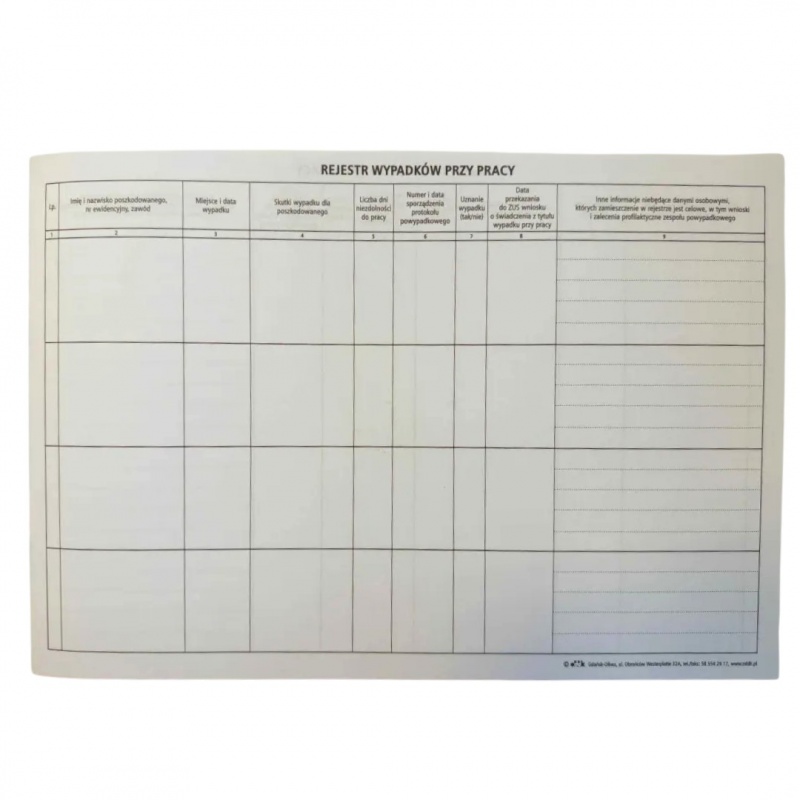 REJESTR WYPADKÓW PRZY PRACY BR100, Pozostałe, Galanteria papiernicza