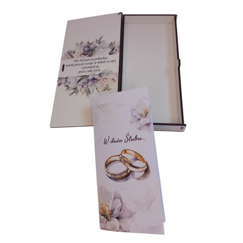 Słowa mają moc, ale kiedy są pięknie opakowane – zapadają w serce na zawsze. Nasze eleganckie pudełko upominkowe z okazji Ślubu to wyjątkowa oprawa dla Twoich życzeń, prezentu lub drobnej pamiątki dla Młodej Pary.