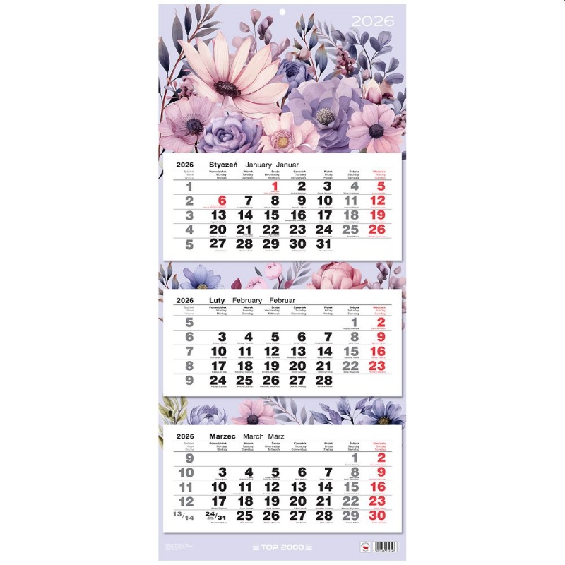 KALENDARZ TRÓJDZIELNY TOP 2000 MIX 2026 31X71 Kalendarze trójdzielne to idealne rozwiązanie dla tych, którzy chcą łączyć funkcjonalność z...
